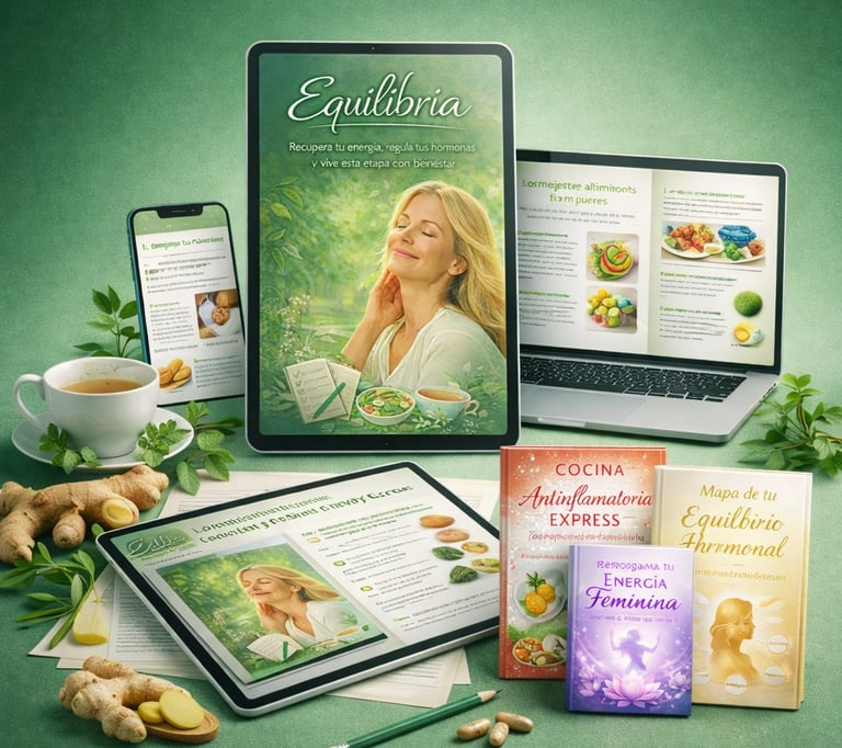 Equilibria es un sistema completo de bienestar femenino diseñado para ayudarte a equilibrar tus hormonas, reducir la inflamación y recuperar tu energía de forma natural. A través de un enfoque práctico que combina biohacking, alimentación consciente y más de 500 recetas funcionales, vas a aprender cómo cuidar tu cuerpo sin dietas restrictivas ni soluciones complicadas.